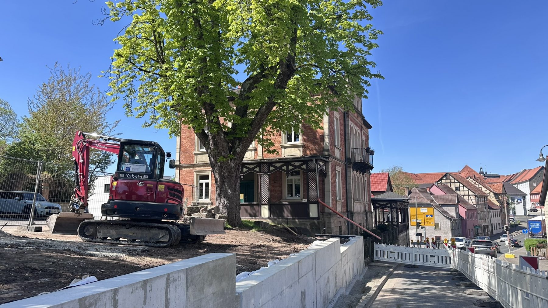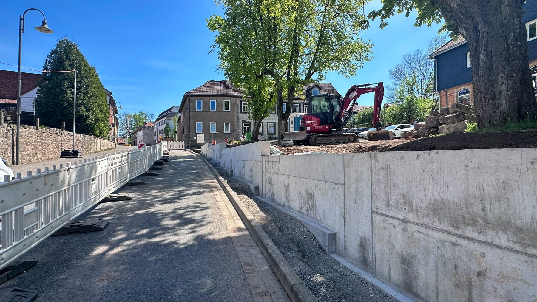 In Hildburghausen tut sich was! Wir haben die alte Natursteinmauer im Stadtkernbereich abgerissen und durch eine neue, stabile Stahlbetonmauer ersetzt. Diese wird bald noch mit Natursteinen verkleidet, damit sich die neue Mauer gut in das Stadtbild einfügt.